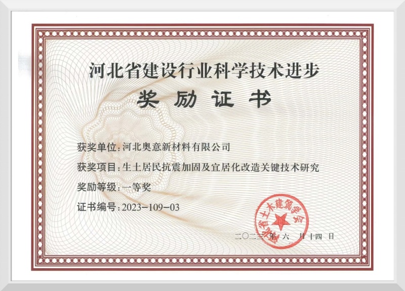 河北省建設(shè)行業(yè)科學(xué)技術(shù)進(jìn)步獎(jiǎng)勵(lì)證書