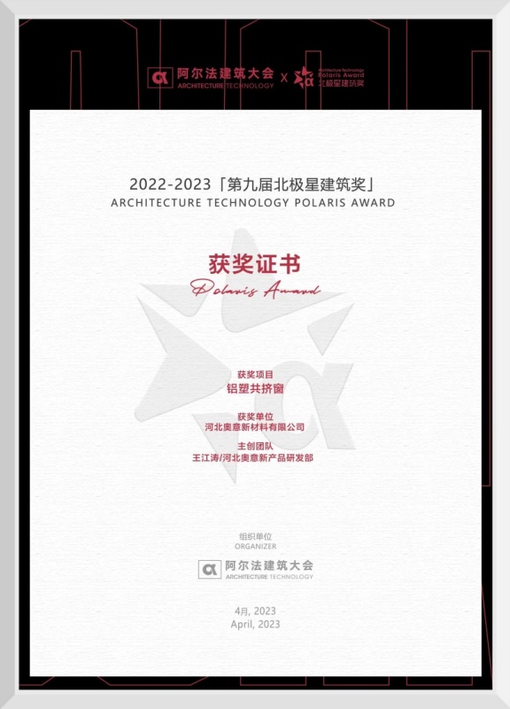 鋁塑共擠窗北極星建筑獎(jiǎng)