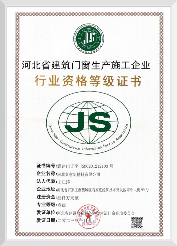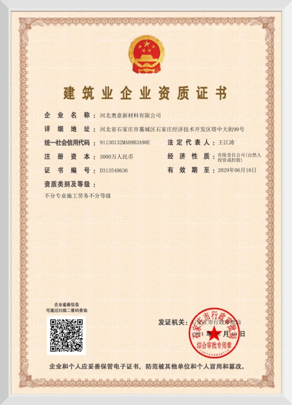 河北省建筑行業(yè)施工資格等級(jí)證書